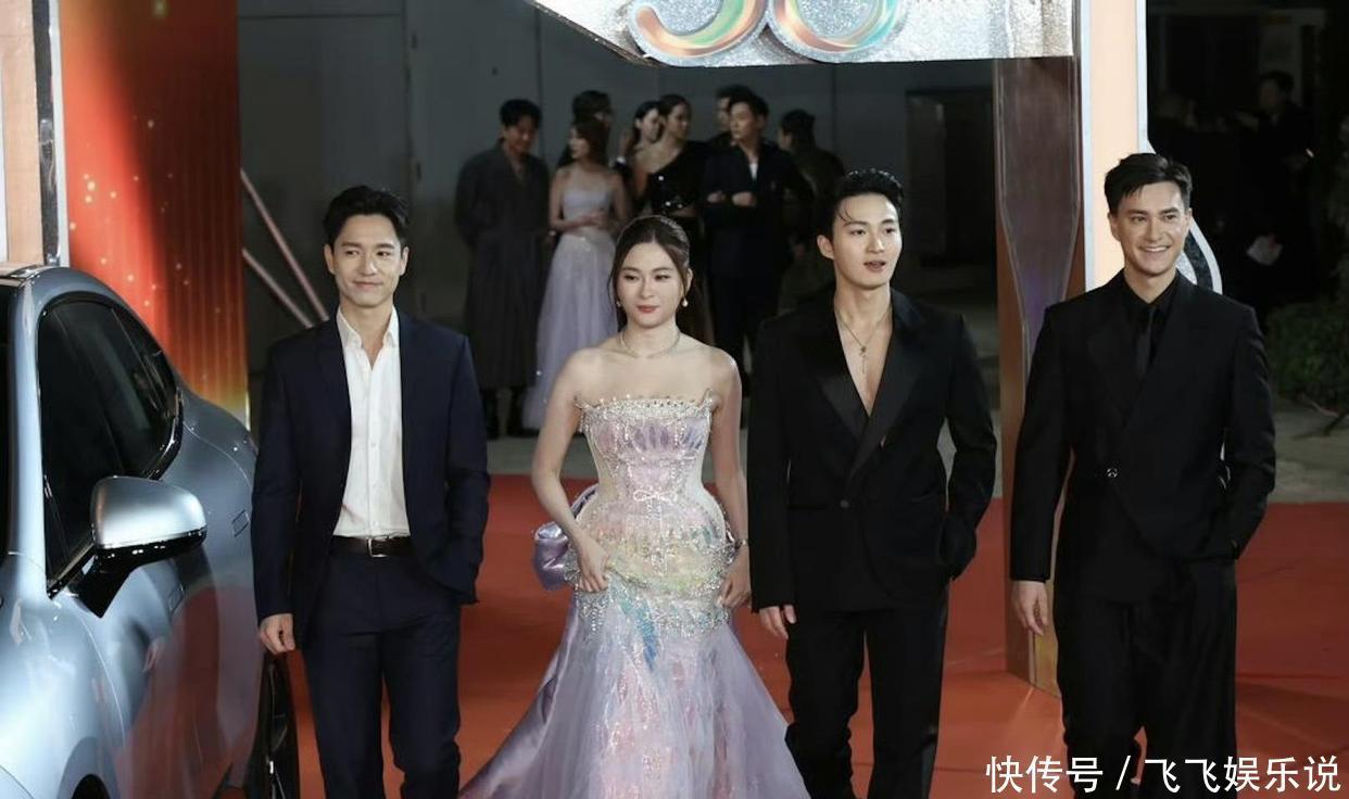 一班女艺人在各种打扮中争奇斗艳的时候,男 stars 里头也有不少抢眼的,特别是当日特别受到关注的肯定是力捧的小生周嘉洛啦。那天他一身黑色西装亮相,最吸睛的当然是那身真空状态的搭配,胸肌若隐若现,简直让同行的女星都惊艳到不行,就连他的好友朱敏瀚也忍不住多看了几眼。